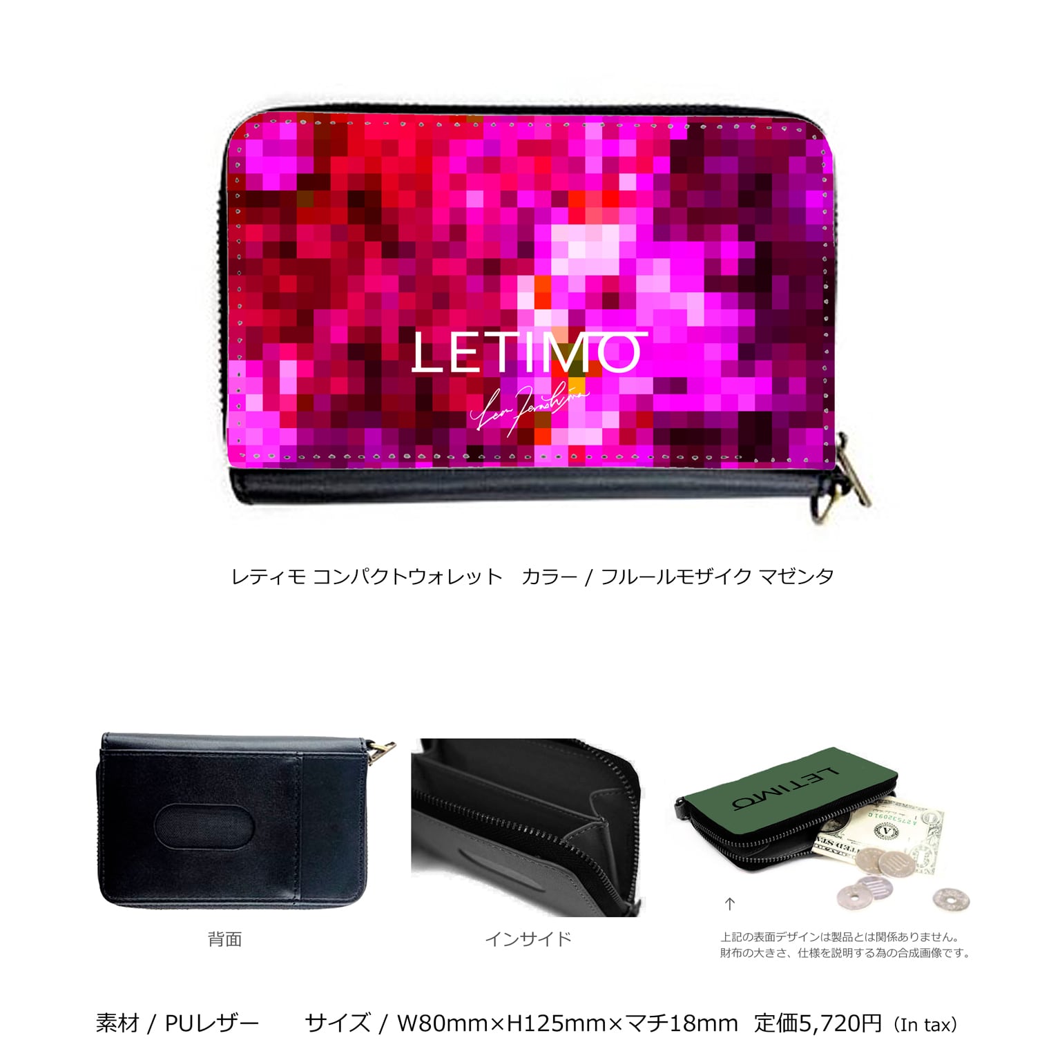レティモ コンパクトウォレット カラー/フルールモザイクマゼンタ ■配送まで2週間 | LETIMO オフィシャルオンラインショップ