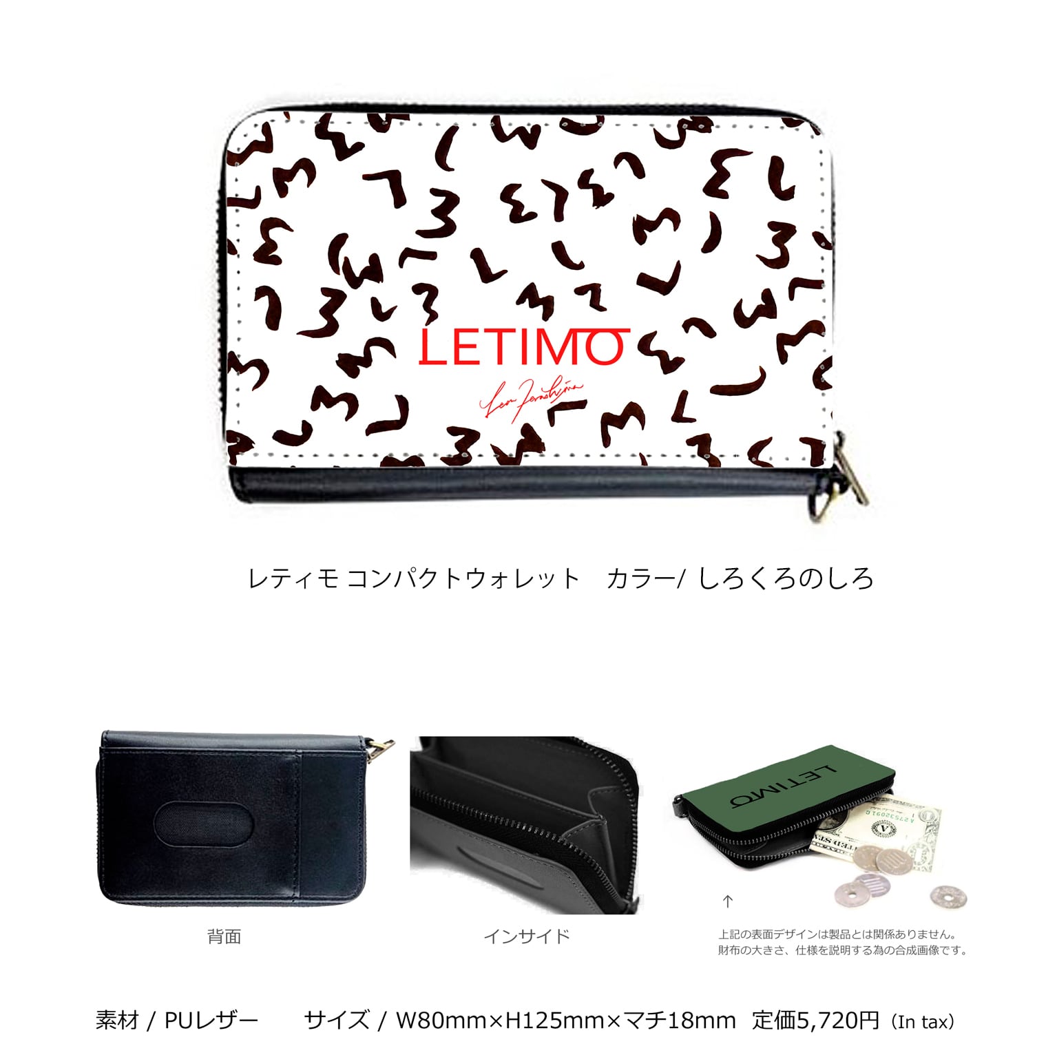 レティモ コンパクトウォレット カラー/しろくろのしろ ■配送まで3週間